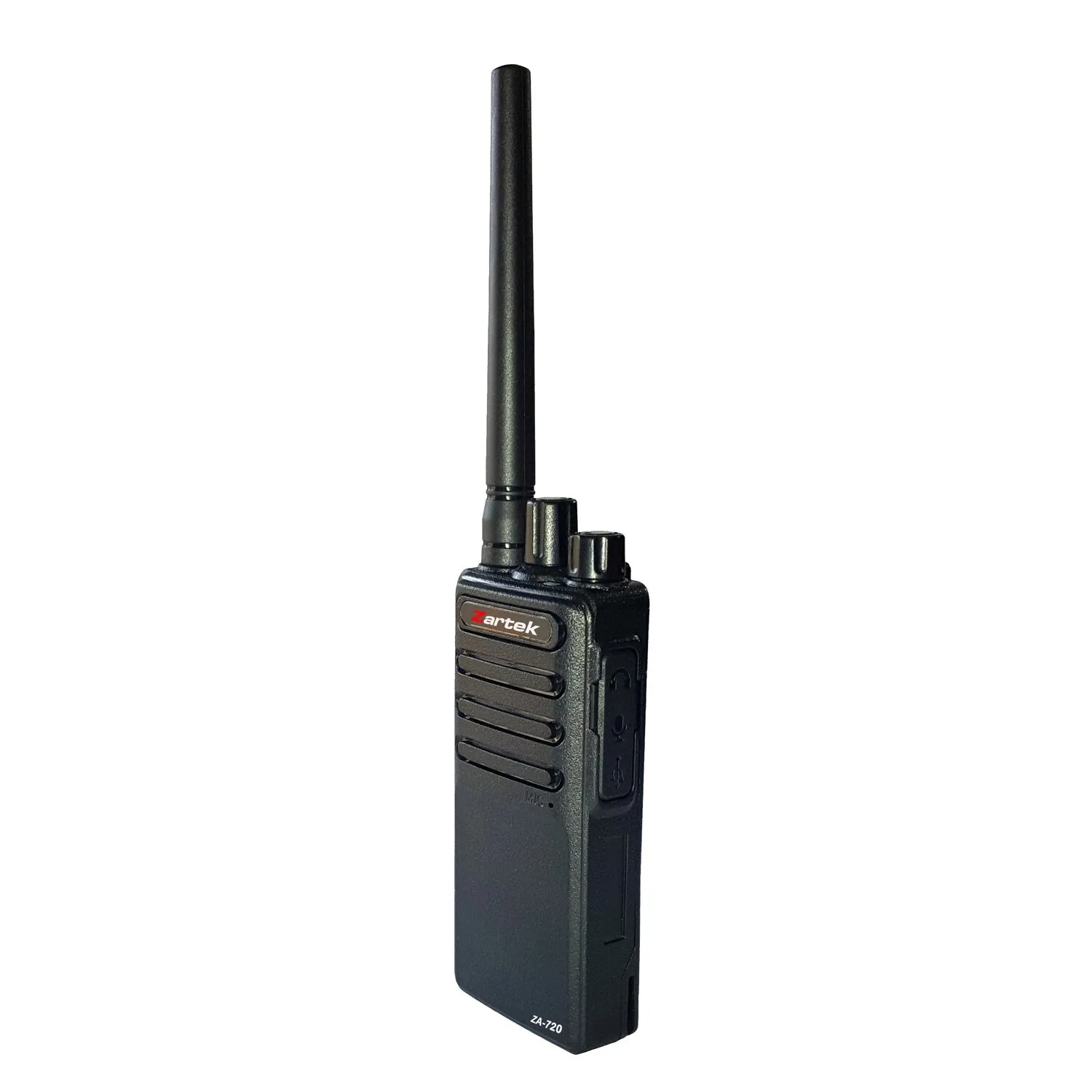 Zartek ZA-720 two- way radio, UHF handheld transceiver, 2 pin side jack, USB charging port (incl radio, detachableantenna, desktop cradle charger, Battery, belt clip)
